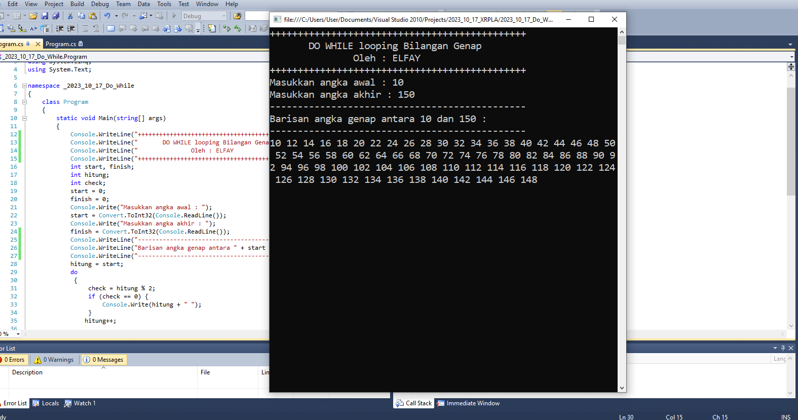 Console.WriteLine(” DO WHILE looping Bilangan Genap “);